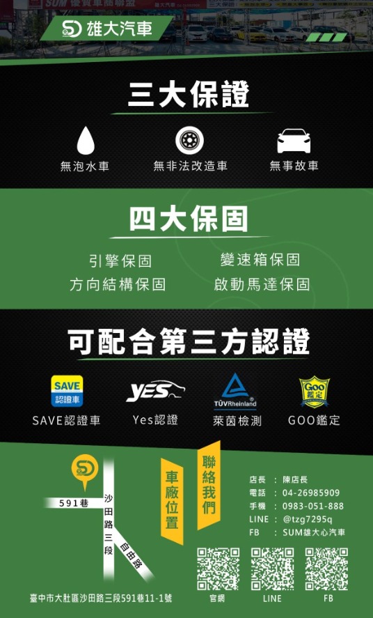(以上配備或其他配備以實車為主,歡迎連絡了解詳細配備)